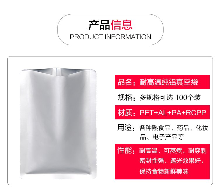 耐高溫純鋁箔真空袋蒸煮袋...